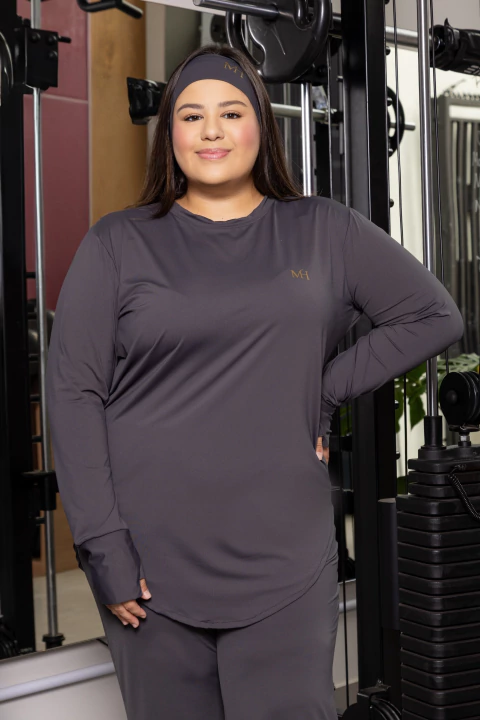 Com modelagem alongada e mangas longas, oferece cobertura elegante sem perder liberdade de movimento. O detalhe funcional para o encaixe do dedão garante praticidade e um toque moderno ao design.
