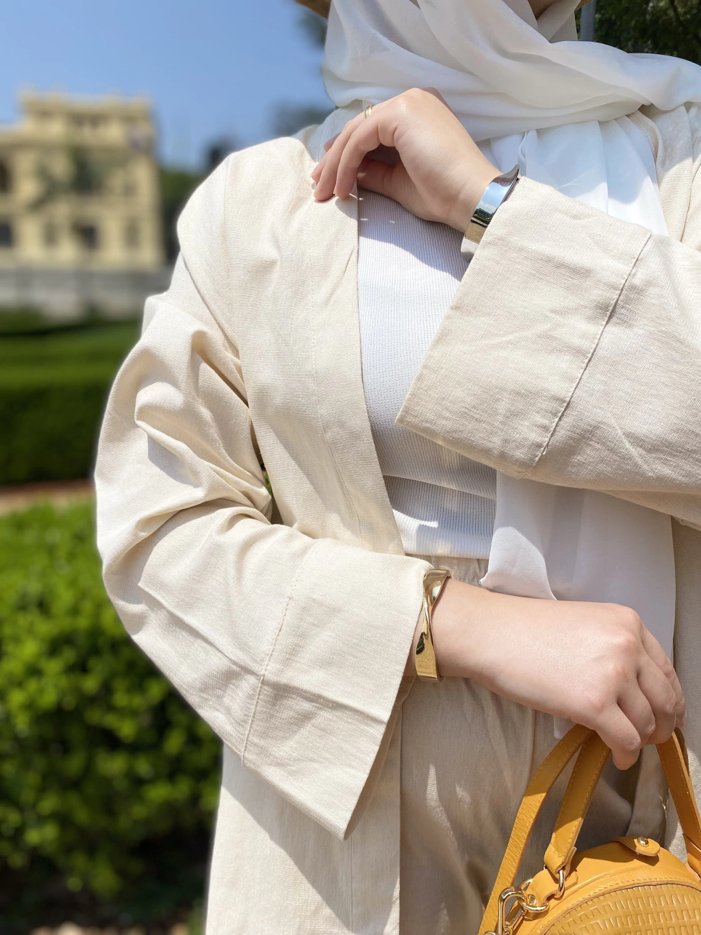 Experimente a elegância atemporal e a sofisticação descontraída do Kimono Helena, uma peça que transcende as estações. Composto por uma blusa (kimono) que acompanha um cinto faixa e uma calça reta, ambos confeccionados em luxuoso linho, este conjunto é a personificação do conforto e da elegância.